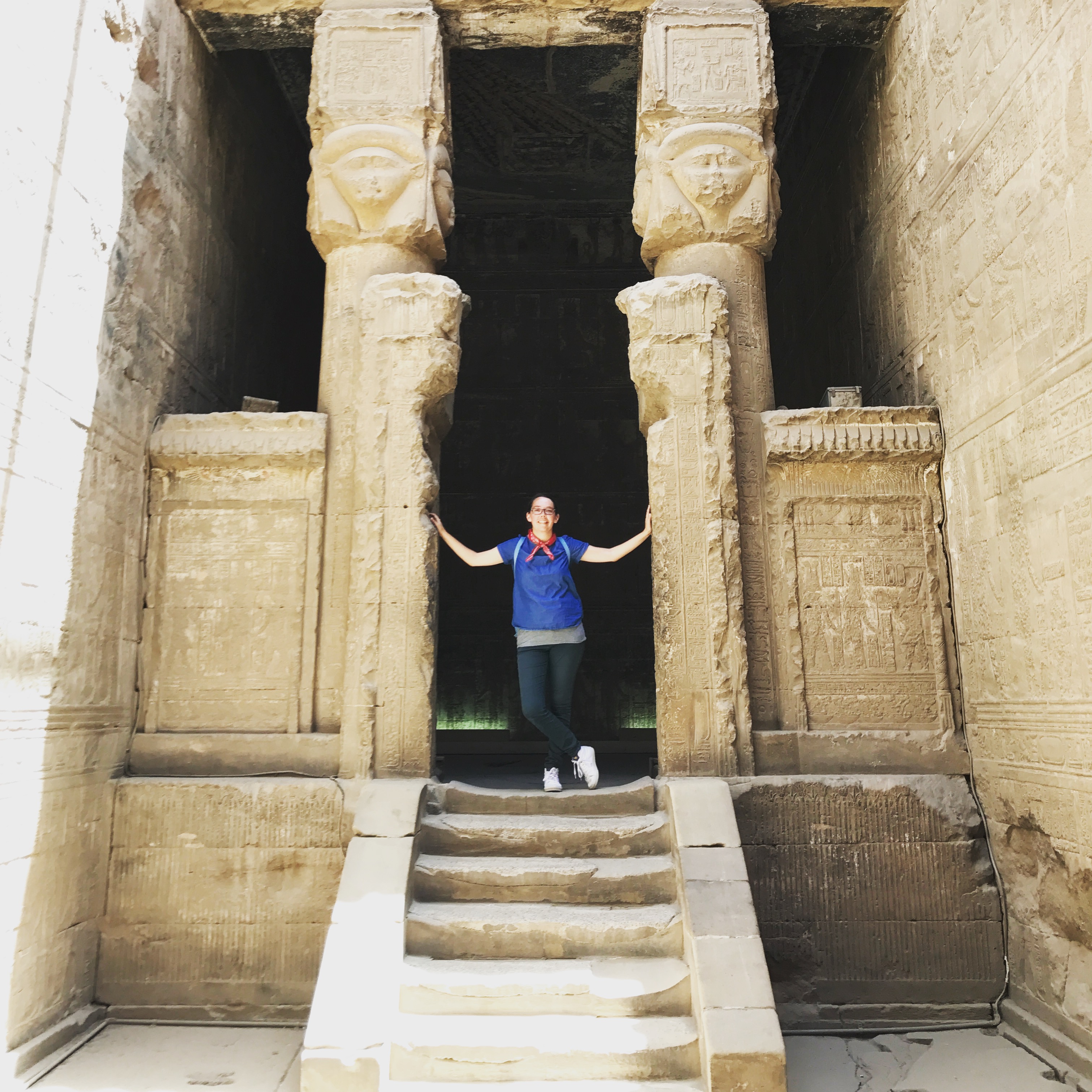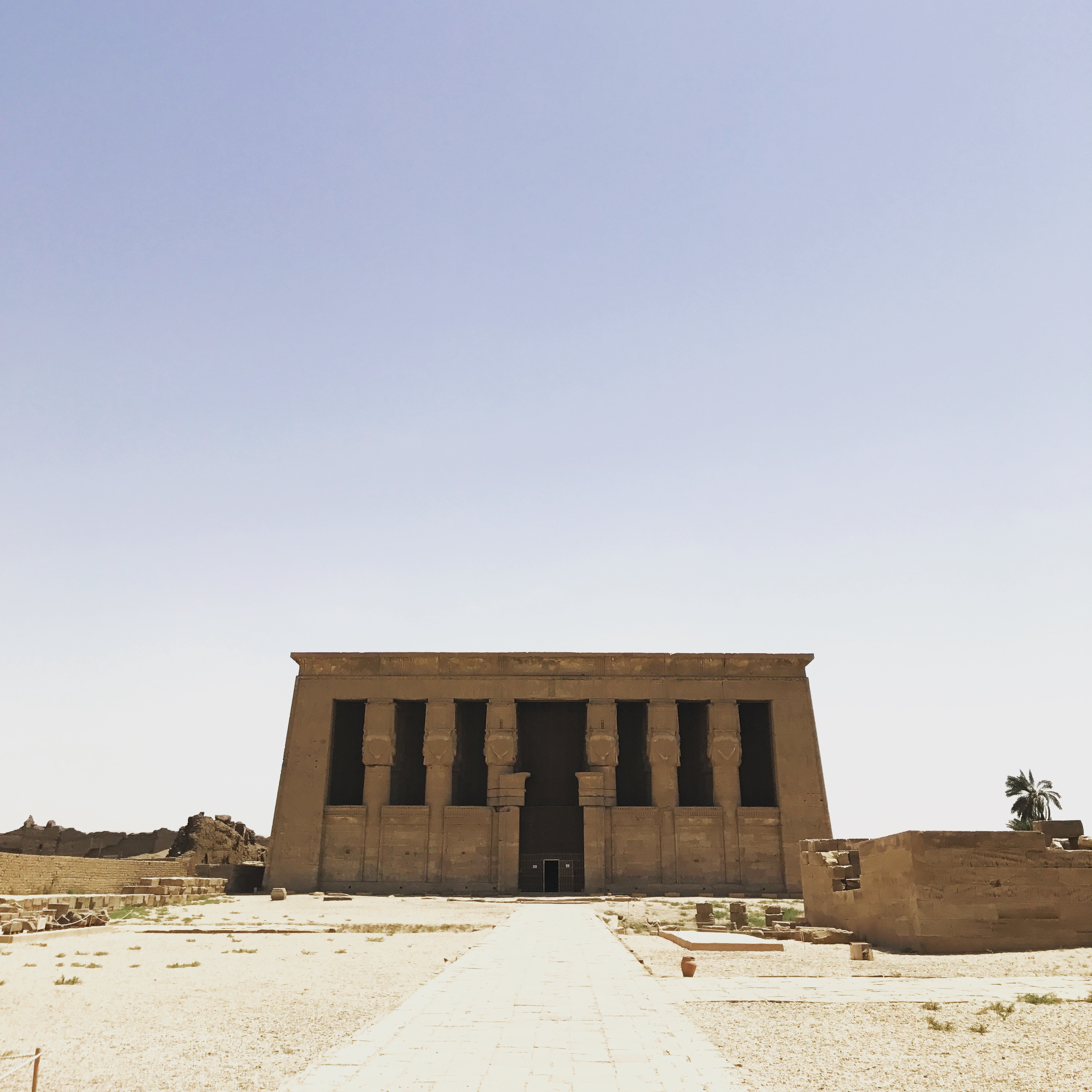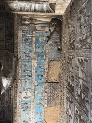 This Temple was built by the Greeks during the Ptolemaic kingdom of Egypt. It was built to honor the goddess Hathor. We were in shock at how well preserved the temple was. We got to go down inside a tomb which Cleopatra had gifted a necklace to the goddess. The tomb was very narrow and dark, yet the reliefs were beautifully preserved. The temple actually is home to the only know relief of Cleopatra, the last queen of ancient Egypt. It also is kown for it’s depiction of the zodiac. There is a split zodiac on the roof of the hypostyle hall, and another in the small temple on the roof. The depiction of the zodiac on the roof is now located in Paris and the zodiac is a replica. The color and preservation of the split zodiac on the first floor is breathe taking. It also shows the goddess Nut swallowing the sun and giving birth to the sun and shinning rays into Hathor.