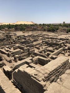 After we visited this island we moved on to another. This time we sailed on a traditional felucca sailboat to the island of Elephantine. In ancient Egypt this was the border between Egypt and Nubia. There are a lot of ruins on the island and they have active archeological excavations happening on the island, which were visible everywhere by the stacks of columns waiting to be sorted. There’s a Temple complex to the god Khnum, which is still undergoing preservation, as well as, a temple to the goddess Satet.